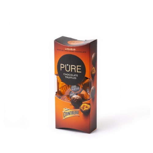 Juodojo šokolado triufeliai PURE su kreminiu apelsinų likerio „COINTREAU” įdaru, 108g
