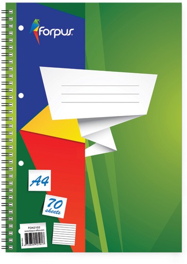 Sąsiuvinis su spirale FORPUS, A4, 70 lapų, su perforacija, linija