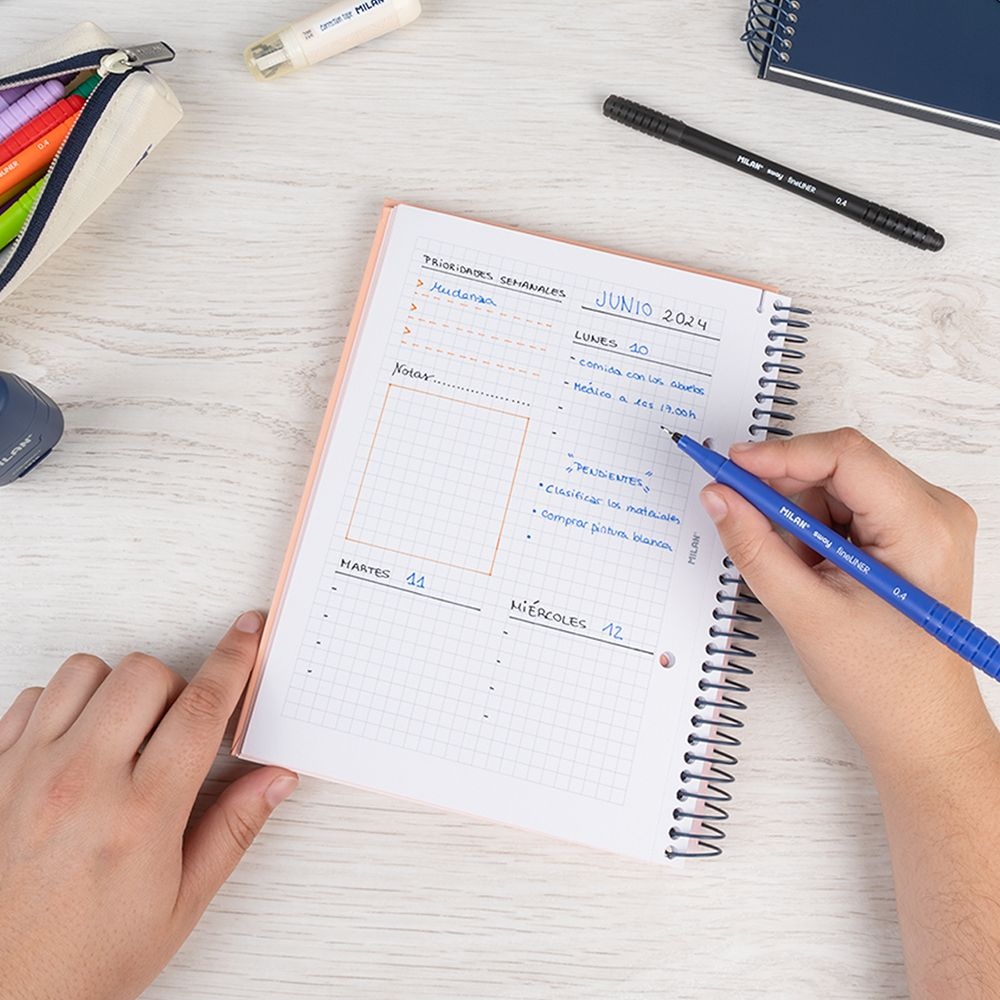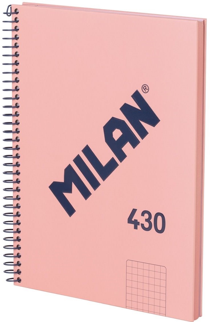 Sąsiuvinis su spirale ir kietu viršeliu MILAN 430, A5, 80 lapų, langeliais, rožinės spalvos