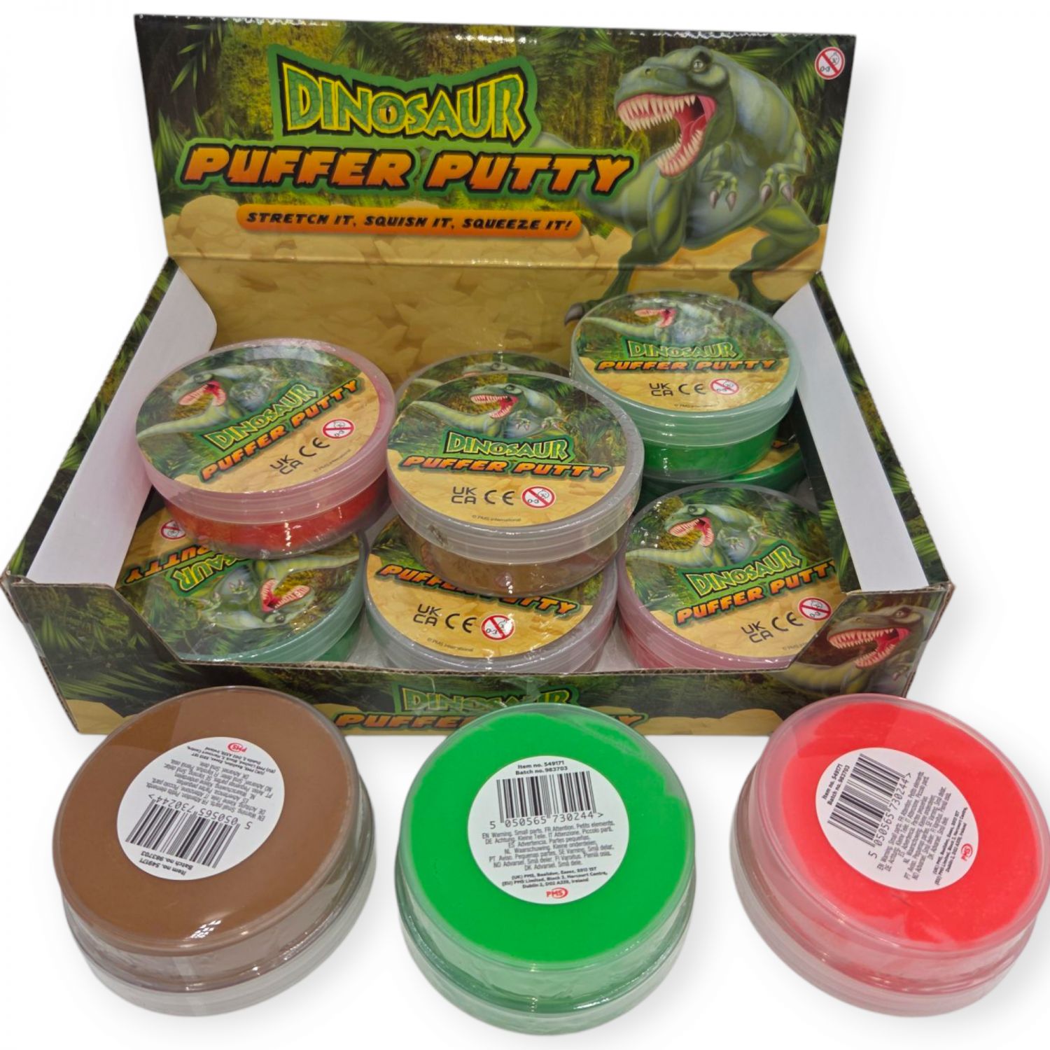 Pasinerkite į dinozaurų pasaulį su šia minkšta, spalvinga lipdymo mase! „Puffer Putty“ yra elastinga, tampoma, spaudžiama ir minkoma – tai puikus būdas lavinti vaikų smulkiąją motoriką bei vaizduotę.