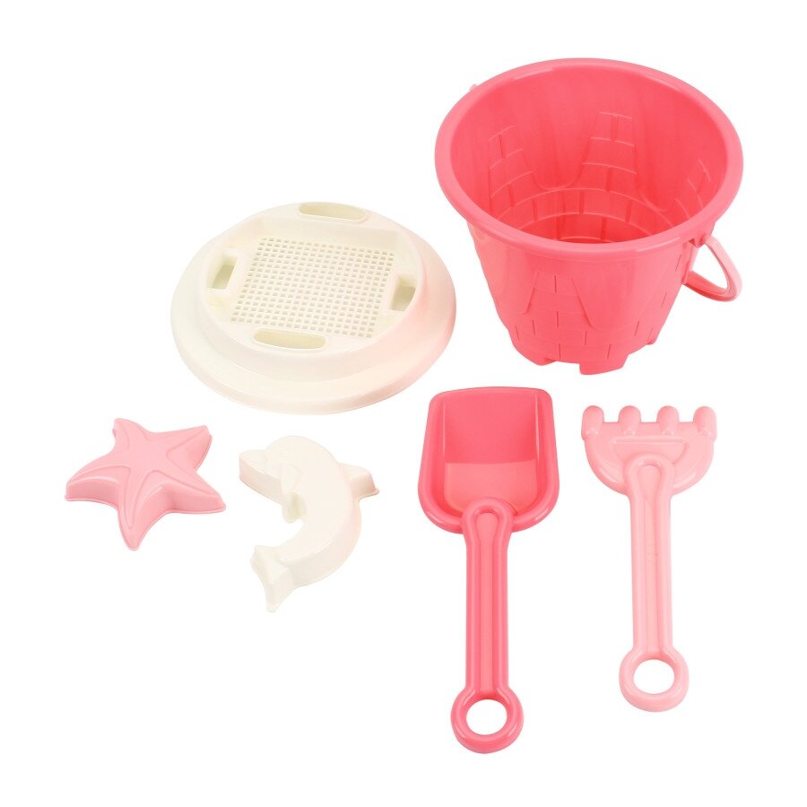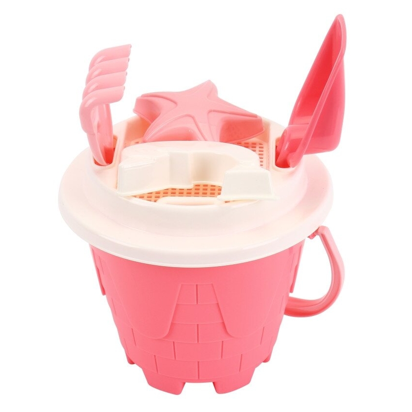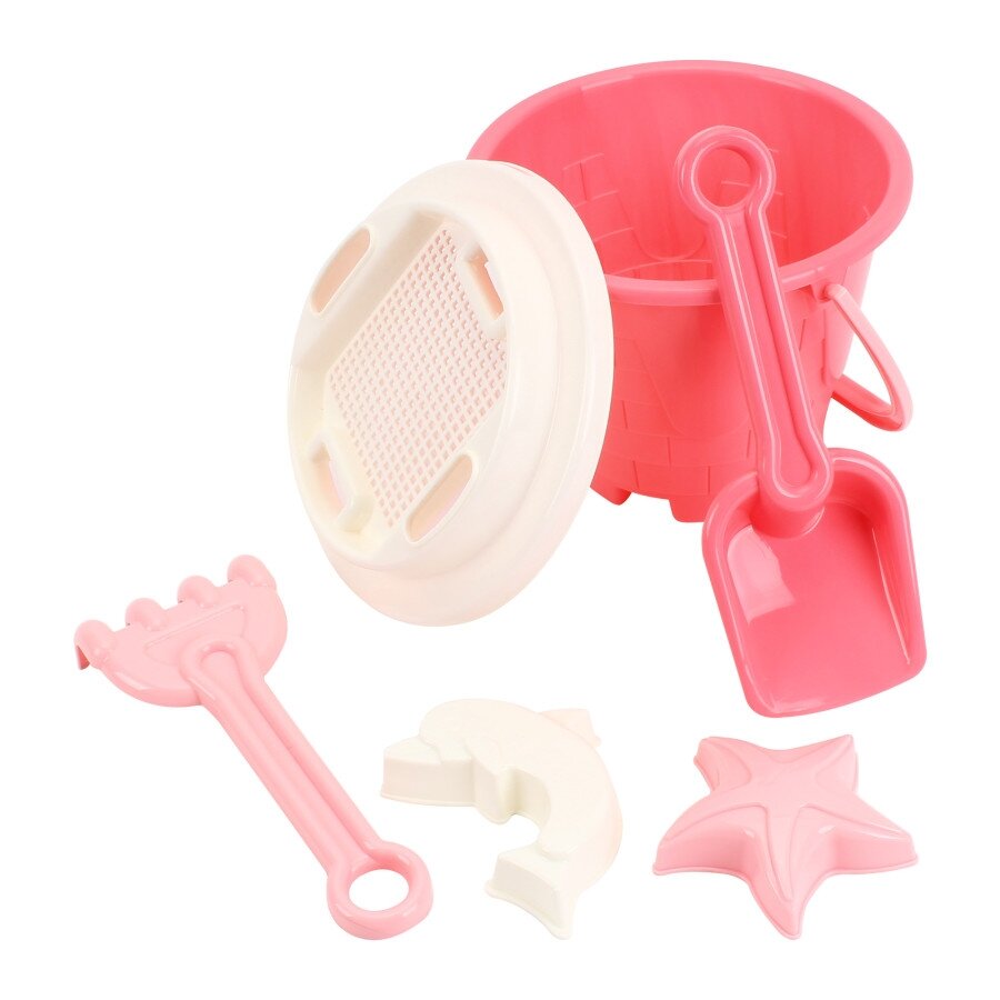 Pastelinių spalvų rinkinys – puikus pasirinkimas vasaros pramogoms smėlio dėžėje ar prie jūros. Švelnios rožinės ir kreminės spalvos suteikia jaukumo, o patogūs įrankiai ir formelės skatina kūrybišką žaidimą.
