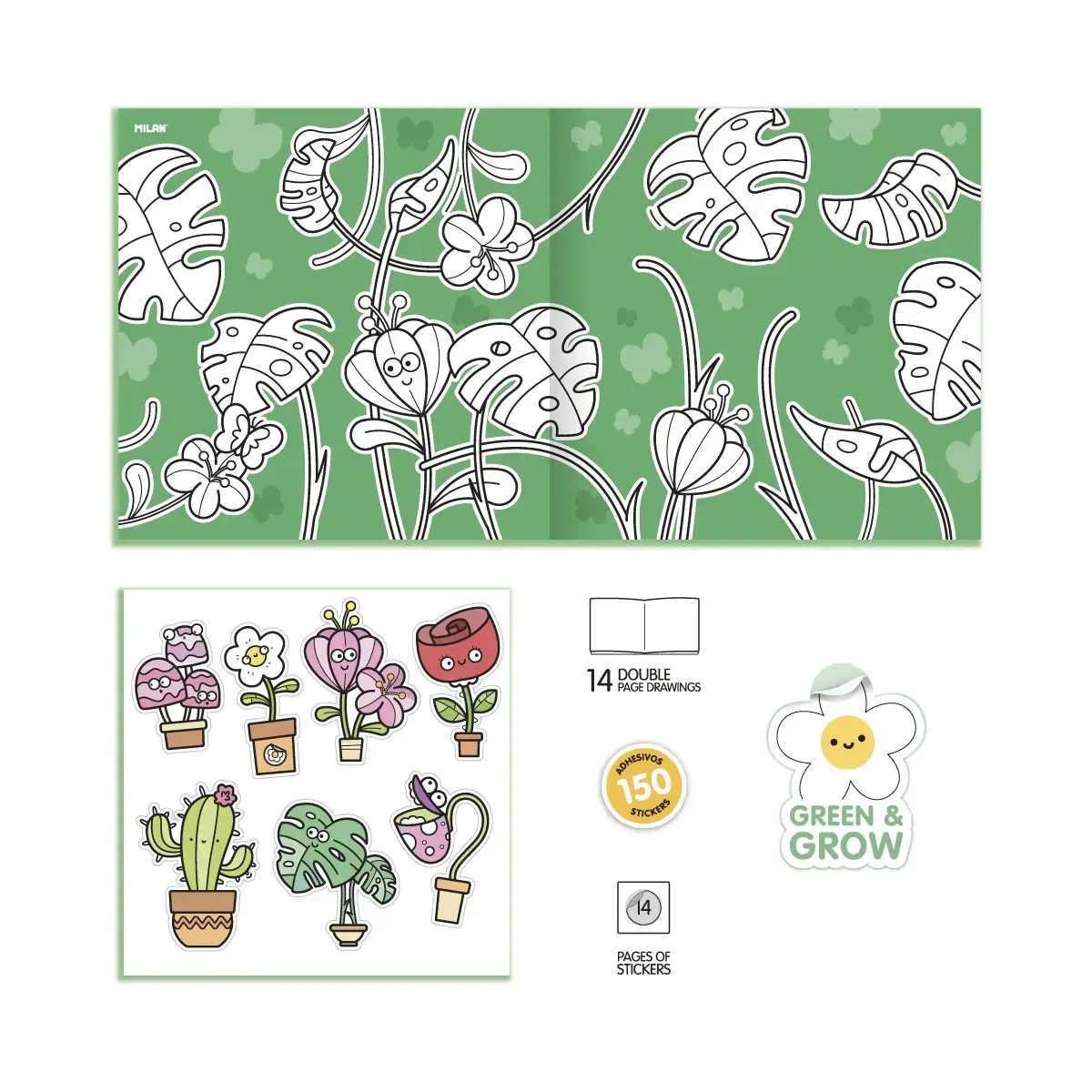 Spalvinimo knygelė MILAN Green & Grow, su lipdukais