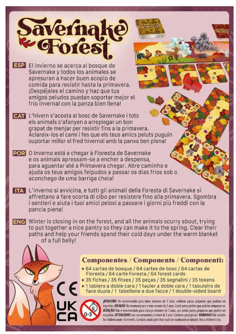 SAVERNAKE FOREST - tai dailiai iliustruotas žaidimas, kuris išlaiko balansą tarp linksmybių ir strategijos. Žaisdami vaikai lavins dėmesio koncentravimą, atkaklumą bei mokysis strateguoti, kad pasiektų geriausio rezultato. Puikiai tinka žaidimo popietiems su šeima ar draugais.