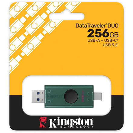Kingston USB Flash Drive | DataTraveler Duo | 256 GB | USB Type-A and USB Type-C | Black/Green
