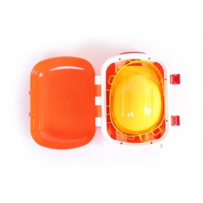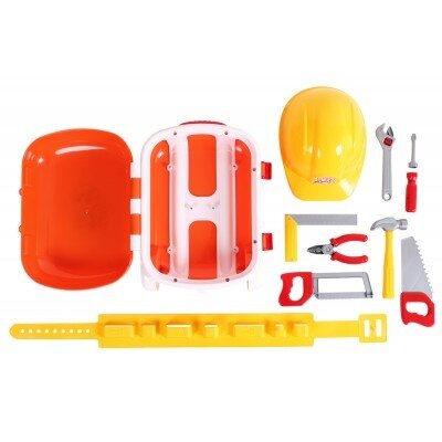 Rinkinys pagamintas iš saugaus plastiko. Lagamine yra buityje reikalingiausi žaisliniai įrankiai: plaktukas replės, pjūklas metalui ir pjūklas medžiui, kampuotį, santechninį raktą, atsuktuvą su dviem antgaliais. Taip pat „stebuklingame“ mažojo meistro lagamine yra patogus diržas su specialiomis kišenėmis įrankiams ir šalmas, kuris labai panašus į suaugusių statybininkų šalmą.