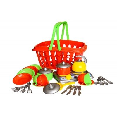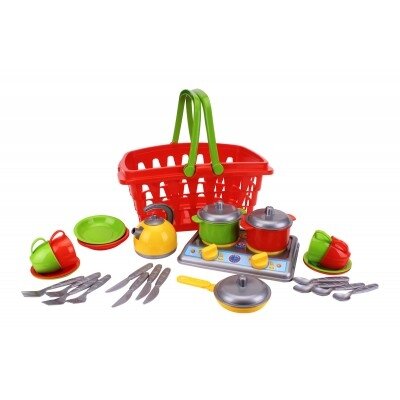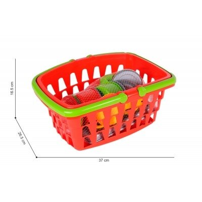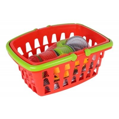 Komplektas telpa į didelį, patogų krepšelį su dviem rankenomis, tad vaikas gali lengvai pasiimti jį su savimi į gamtą ar kiemą ir surengti linksmą pikniką draugams. Namuose taip pat patogu visus žaislus susidėti į šį krepšį, todėl tvarka ir organizuotumas vaikų kambaryje – garantuoti.