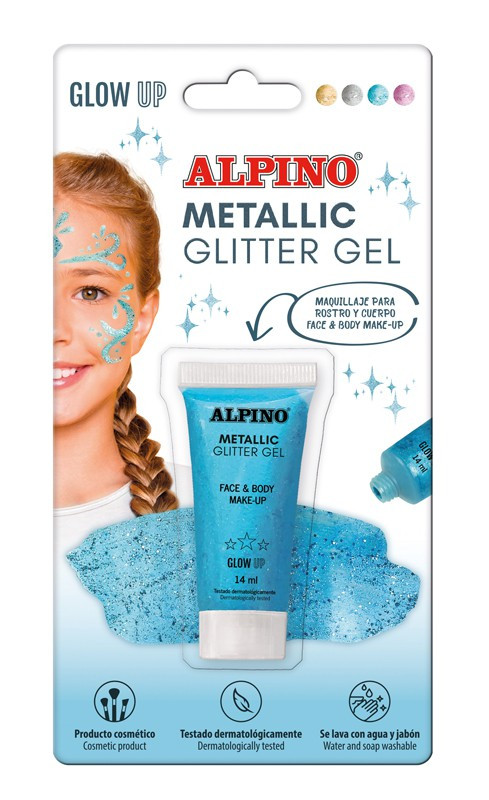 Veido grimo gelis ALPINO Metallic, mėlynas, su blizgučiais, 14 ml