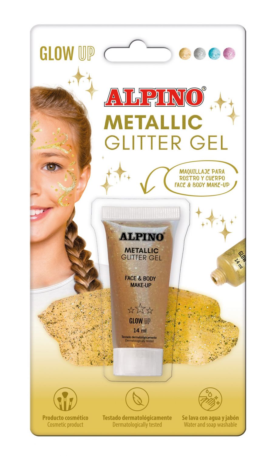Veido grimo gelis ALPINO Glitter, auksinis, su blizgučiais, 14 ml