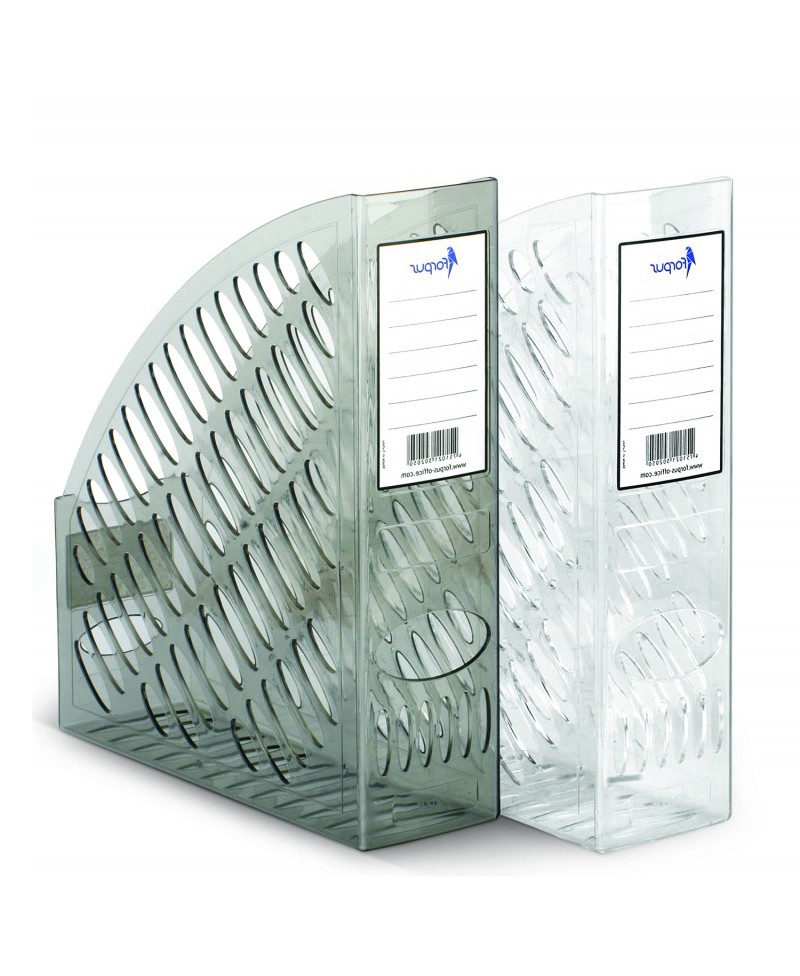 Vertikalus plastikinis dokumentų stovas. Perforuotos sienelės. Kiaurymė pirštams. Yra vieta užrašui. Nugarėlės plotis 75 mm. Matmenys 315 x 75 x 260 mm.