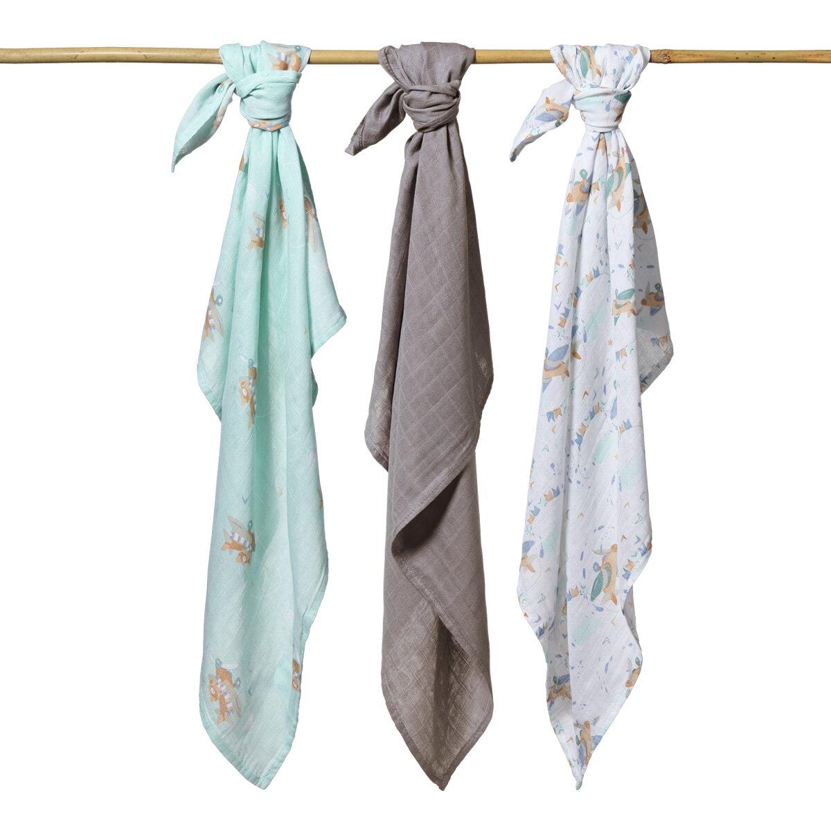 Bambukiniai vystyklai BABYONO, 3 vnt., pilki